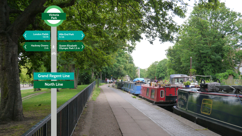The park pole could also be at the edge of the park if it’s on a quiet way by the river or canal, where lot of people would pass. I think there is no particular rule either than being somewhere central, where it is seen. For example Victoria park runs along the Regent Canal, but its true centre is quite far – if you walk by the canal, you wouldn’t come across the pole. It’s also possible the park is connected with several ‘lines’. Victoria park on the Greenground map is on Regent Line, but is also nearby to other significant North London parks ‘connected’ via North Line. The alternative could be Victoria park having two park poles for each line.