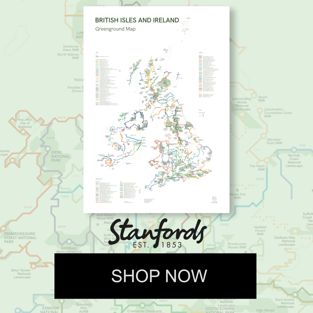 The extensive Greenground Map brings together national parks, nature sites, and long-distance trails across England & Wales, Scotland, and Ireland.